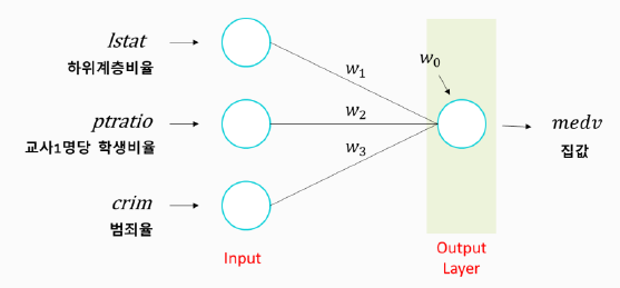 # 메모리 정리 clear_session() # Sequential 타입 model = Sequential([Input(shape = (nfeatures, )), Dense(1)]) # 모델 요약 model.summary()nfeatures는 입력 노드의 수로 위의 그림에서는 값이 3이다.