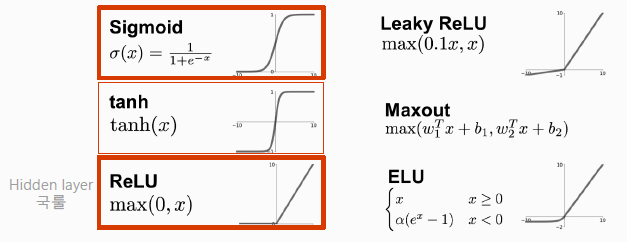 - Hidden Layer에서는 선형 함수를 비선형 함수로 변환