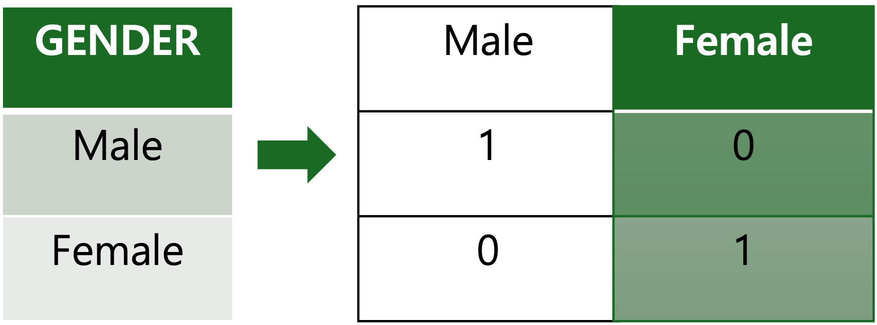 예를 들어, 성별의 경우 남자는 1/ 여자는 0으로 표시하되 inplace=True를 사용해 Female 칼럼으로만 표현한다.